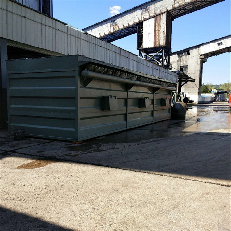 布袋除塵器物料轉(zhuǎn)運(yùn)產(chǎn)生的揚(yáng)塵由除塵罩收集后,經(jīng)管道輸送至緩沖倉(cāng)除塵器集中處理后由排氣筒排出。除塵管道設(shè)置電動(dòng)閥門,與皮帶連鎖控制。除塵灰卸灰采用灰倉(cāng)插板閥+卸灰閥-刮板機(jī)-集灰倉(cāng)方式,按照兩種運(yùn)輸方式設(shè)計(jì)和配置:密閉罐車輸灰和加蓋自卸車輸灰。除塵設(shè)備布置在地面上。