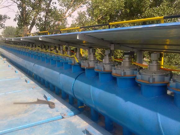 2)噴吹管。噴吹管是一根無縫耐壓管,上面按除塵濾袋數(shù)量開有若干噴吹孔口。噴吹管的技術(shù)要點(diǎn)在于噴吹管直徑、開孔數(shù)量、開孔大小及噴吹中心到濾袋口的距離要相互匹配。如果設(shè)計(jì)或選用不當(dāng)會(huì)影響清灰效果。為_清灰效果,這些參數(shù)可以通過試驗(yàn)確定,也可以通過實(shí)踐經(jīng)驗(yàn)選取。一般認(rèn)為噴吹孔口應(yīng)小于18個(gè),開孔為ф8-32mm,噴吹管距袋口200-400mm為宜。