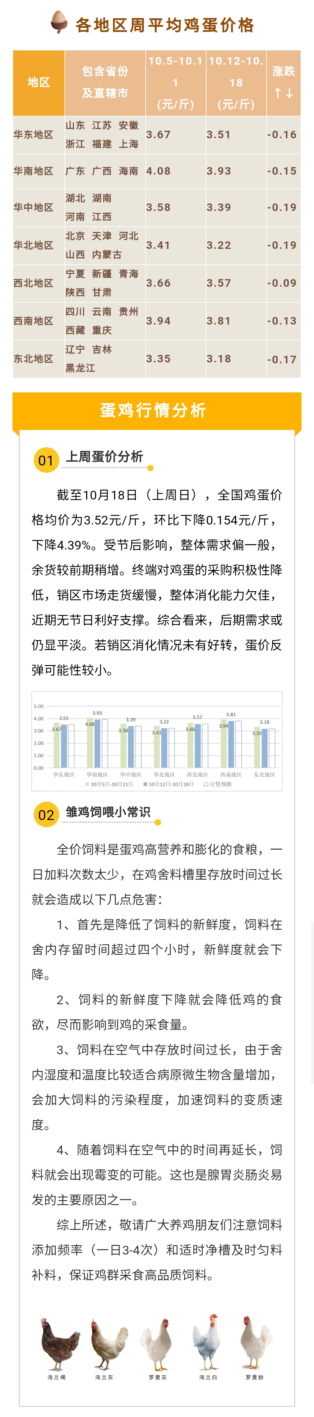 雞蛋價格 | 截止10月18日各地區周平均雞蛋價格及行情分析