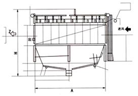 含塵氣體由導流管進入各單元灰斗,在灰斗導流系統(tǒng)的引導下大顆粒粉塵分離后直接落入灰斗,其余粉塵隨氣流進入中箱體過濾區(qū),過濾后的清凈氣體透過濾袋,經上箱體、離線閥、排風管排出。隨著過濾的進行,當濾袋表面積達到_量時,由清灰控制裝置按設定程序關閉離線閥,打開電磁脈沖閥噴吹,抖落濾袋上的粉塵,落入灰斗的粉塵經卸灰閥排出。