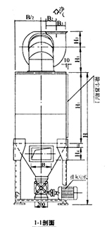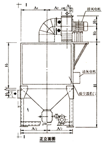 (1)構(gòu)造。A型由過濾部分、振打裝置、排風裝置、排料器和風管,部分組成;B型由過濾部分、振打裝置、排風裝置和接管4部分組成。
