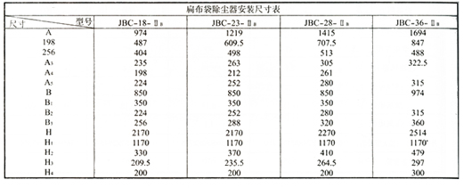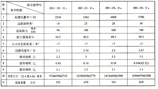 JBC旁插扁布袋除塵器的基本技術性能參數(shù):