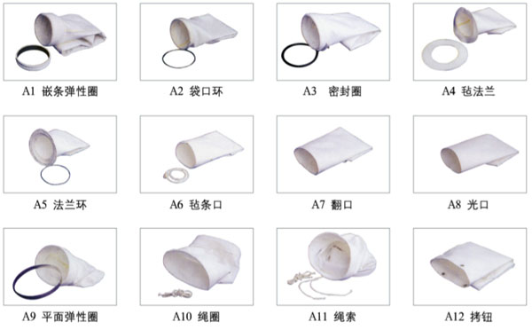 除塵布袋袋口結(jié)構(gòu)形式: