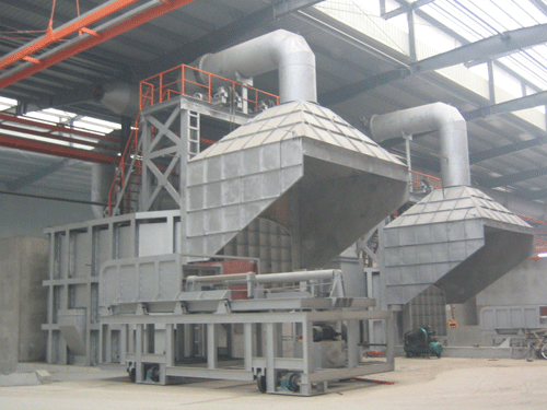 中頻爐除塵器、電爐除塵器、熔煉爐除塵器含塵氣體由導(dǎo)流管進(jìn)入各單元灰斗,在灰斗導(dǎo)流系統(tǒng)的引導(dǎo)下大顆粒粉塵分離后直接落入灰斗,其余粉塵隨氣流進(jìn)入中箱體過濾區(qū),過濾后的清凈氣體透過濾袋,經(jīng)上箱體、提升閥、排風(fēng)管排出。隨著過濾的進(jìn)行,當(dāng)濾袋表面粉塵聚集達(dá)到_量時(shí),由清灰控制裝置按設(shè)定的程序關(guān)閉提升閥,打開電磁脈沖閥噴吹,抖落濾袋上的粉塵,落入灰斗經(jīng)卸灰閥排出。