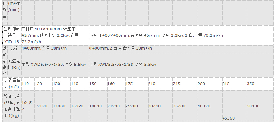 注:1、表中的凈過濾面積是指一個室清灰時的過濾面積。2、表中的耗氣量是工廠集中供氣的情況,如設置單獨空壓機時,表中的耗氣量要乘上1.3系數(shù)。