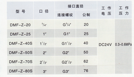 DCF-Z型直角電磁脈沖閥型號(hào)規(guī)格表:(mm)