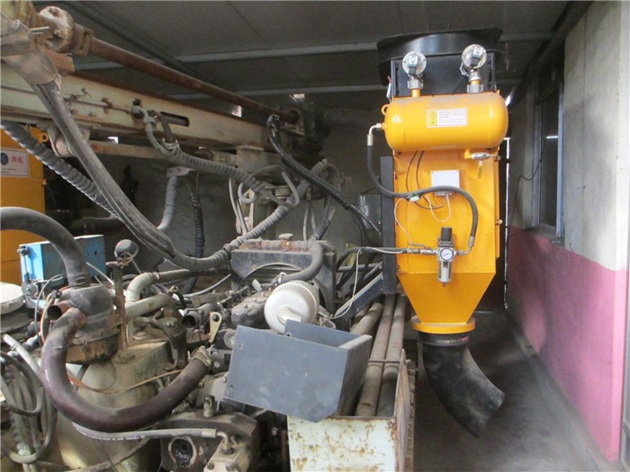 目前國內(nèi)外露天鉆機(jī)上采用了多種形式的干式除塵器。比如國產(chǎn)的重型鉆機(jī)KQ-250采用了沉降箱-旋風(fēng)除塵器的系統(tǒng),重型潛孔鉆機(jī)KQ-200采用了沉降箱-旋流器-氣動脈沖除塵系統(tǒng);中型的潛孔鉆機(jī)KQ-150采用了沉降室-多管旋流除塵系統(tǒng);在進(jìn)口的美國45-R型牙輪鉆機(jī)上采用了大型的集塵罩-沉降室-拋擲器及機(jī)械離心分離器的除塵系統(tǒng)。事實(shí)證明,以脈沖布袋作為末級的干式除塵器系統(tǒng)的除塵效果比較顯著。