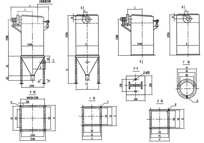 | B型(不帶灰斗) | 1220 | 1470 | 1670 | 2150 | 2540 | 2880 | |